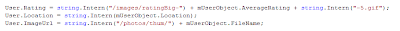 As you can see above that "/images/ratingBig-" is being concatenated or basically a constant value which over hear would make sense to use String.Intern to create only one instance of the global string object.