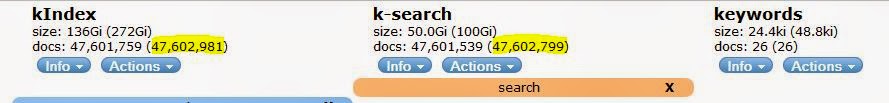 In elasticsearch, an update to a document is basically a delete and reinsert. A delete operation in elasticsearch is basically marking the document to be deleted and not actually deleted. This is problem especially when you have heavy updates/delete operations as the documents are not actually purged but instead just marked for deletion, which takes up disk space. Following screen shot is an example where the total number of documents in the index (where documents can be searched) is not the same as the actual total documents in the index.